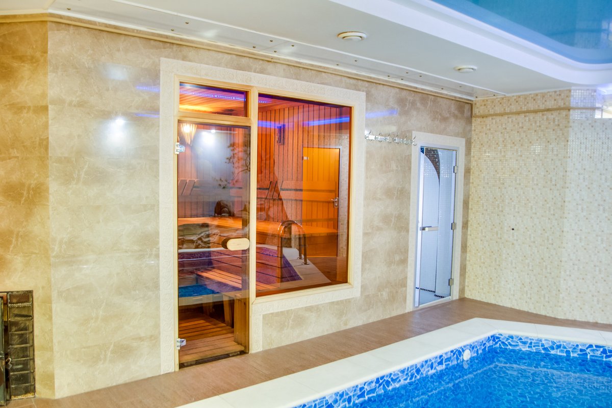 Баня с вениками, и окном что довольно неплохо, но деревом или другими ароматами почти не пахнет, а жаль и нет приятного бурлящего звука. Бассейн немного холодноват показался и маловат. Хаммам с датчиком, полил воды на него пошёл пар, показалось что был ароматизатор эвкалипта, такой лучше в баню бы. Если везде ремонт шикарен, то хаммам выглядит простенько. Не удобная форма стола приходится людям вставать чтобы кто то мог выйти из за стола. Хорошая циркуляция воздуха, классный аквариум. Большая урна для мусора с крышкой очень удобная. Есть нормальная микроволновка и холодильник. С вай фай так и не понял работает или нет. Категорически запрещён выход на участок данного банного коттеджа, а участок красивый, приезд дам запрещён. Ценник в 2500 завышен.